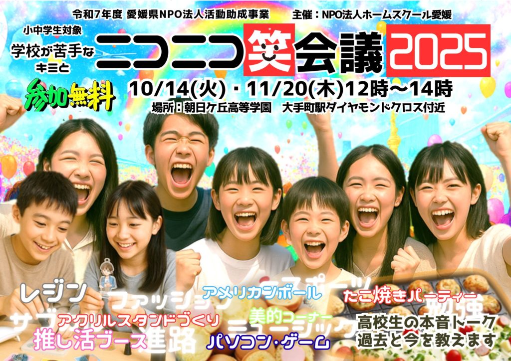 この秋、本学では 学校に行きづらさを抱える小中学生のための交流イベント「ニコニコ笑会議2025」 を開催いたします。